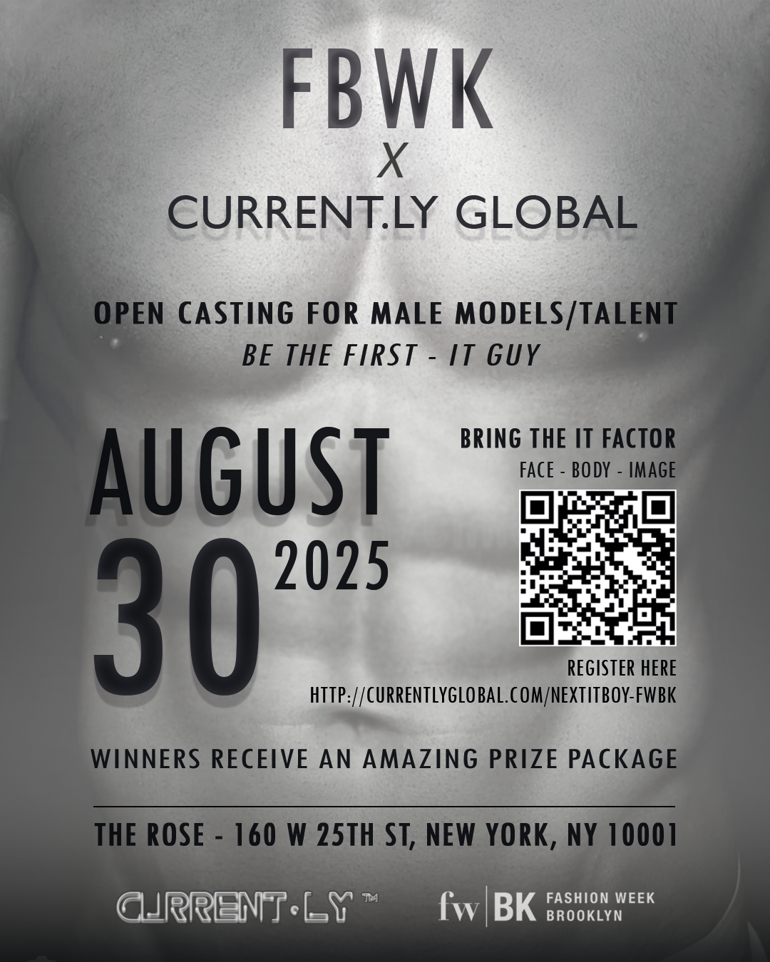 The competition is a dynamic model search designed to find the next generation of “it-boys” across three categories: Body, Image, and Face. It’s powered by Fashion Week Brooklyn and directed in partnership with CURRENT•LY Global.